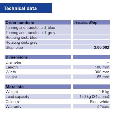 The Aquatec Step is designed for safe and easy bath access by reducing the danger of falling in the bath. The Aquatec Step has a very safe stable frame with feet with non-slip rubber.