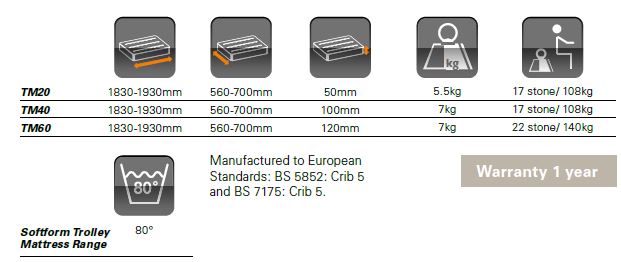 The Invacare Softform Trolley mattress range has been designed to specifically meet the demands of the A&E department, and other areas where trolleys are in regular use. Suitable for those ‘At Risk’1 of developing a pressure ulcer, the high specification pressure redistributing foam mattress offers a comfortable support surface and interim pressure area care for patients waiting for examination and treatment. The mattresses come in a variation of sizes and options for use on a selection of trolley frames and are suitable for X-ray and theatres.