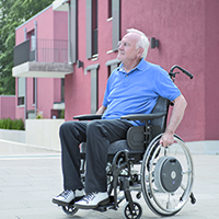 Until recently, Dave relied on a power chair to get around but due to a recent health scare, he decided he needed to become more active and independent so he switched back to a manual wheelchair with power-assist wheels.