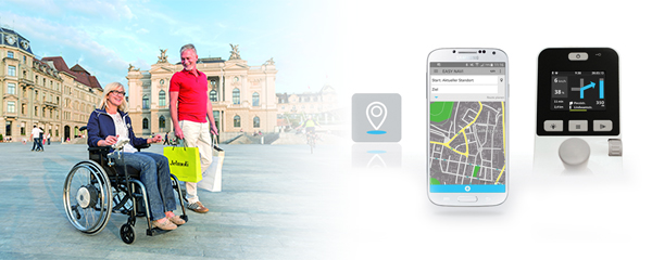 Available on the E-fix E35 and E36, the Mobility Plus package offers new features designed to increase confidence for customers when out and about. It uses Bluetooth technology to connect a smartphone to the E-fix control unit giving access to an array of features including a clever ‘easyNavi’ system. This is ideal when planning a journey with its wheelchair-friendly navigation system that identifies the most wheelchair accessible route. It features a simple start/destination street map based navigation with a dynamic guidance displayed on the E-fix handset to give clear instructions on the route to take.