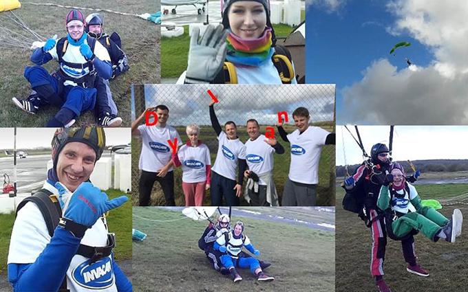 After a short wait some pretty exceptional weather conditions saw two huge holes appears in the cloud offering perfect blue sky jumps for the team, who were now itching to get going. They were all absolute stars and completed the challenge with huge grins.