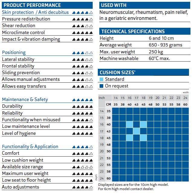 The Vicair Twin O2 is a pressure cushion used in wheelchairs and static seating. Filled with Vicair SmartCells, these little pockets of air are captured in anti-friction material to prevent shear forces. The design is made up of an adjustable front and rear compartment, which helps prevent sliding forward and distributes pressure evenly. The perforated Twin O2 seat cushion allows you to fully machine wash the cushion without neediing to remove the SmartCells as well as being more breathable.